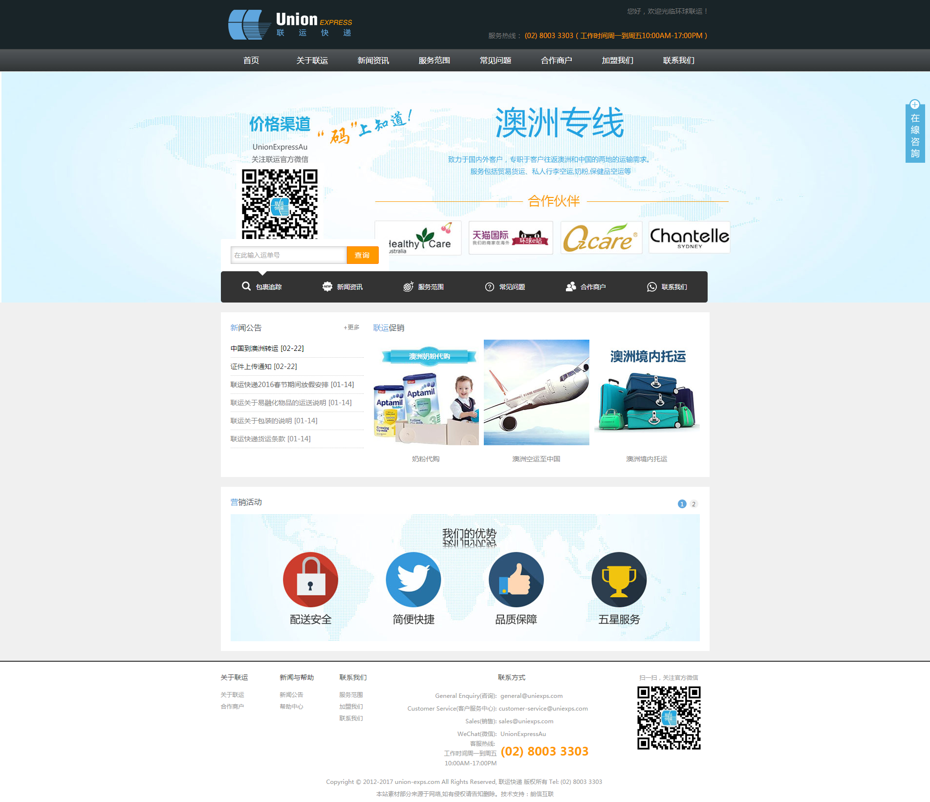 项目介绍: 联运快递公司是澳大利亚一家专业的物流公司,总公司设在悉尼。本公司致力于国内外客户的需求,有着丰富的物流经验,先进的设备技术,专业独立的清关口岸,从澳洲到国内拥有专业的运输团队,良好的国内外关系网络,专职于客户往返澳洲和中国的两地的运输需求。服务包括贸易货运、私人行李空运,奶粉,保健品空运等等。