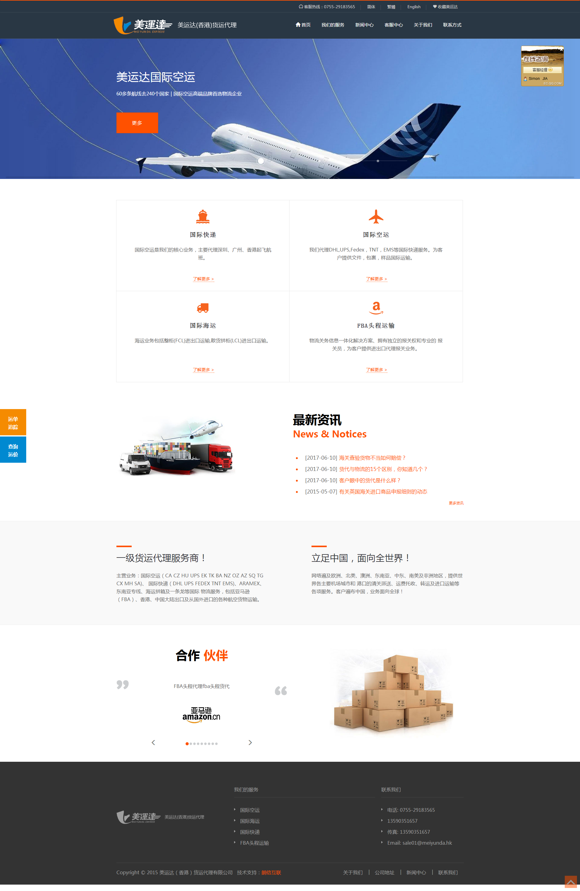 项目介绍:深圳市美运达国际货运代理有限公司是专业的国际航空物流公司,为香港、大陆一级物流 公司,公司主营业务为国际空运(CA CZ HU UPS EK TK BA NZ OZ AZ SQ TG CX MH SA)、 国际快递(DHL UPS FEDEX TNT EMS)、ARAMEX、东南亚专线、海运拼箱及一条龙等国际 物流服务,包括亚马逊(FBA)、香港、中国大陆出口及从国外进口的各种航空货物运输。