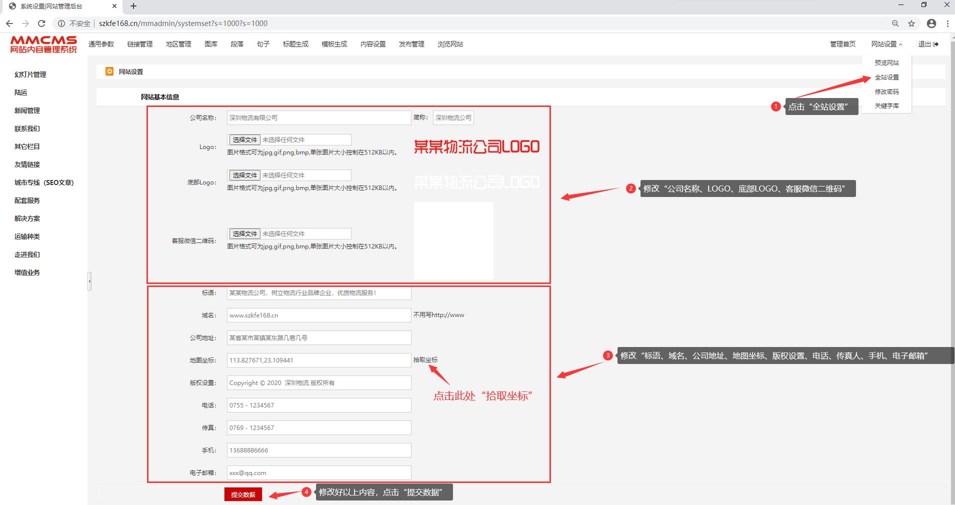 示例后台:http://www.szkfe168.cn/MMAdmin/login