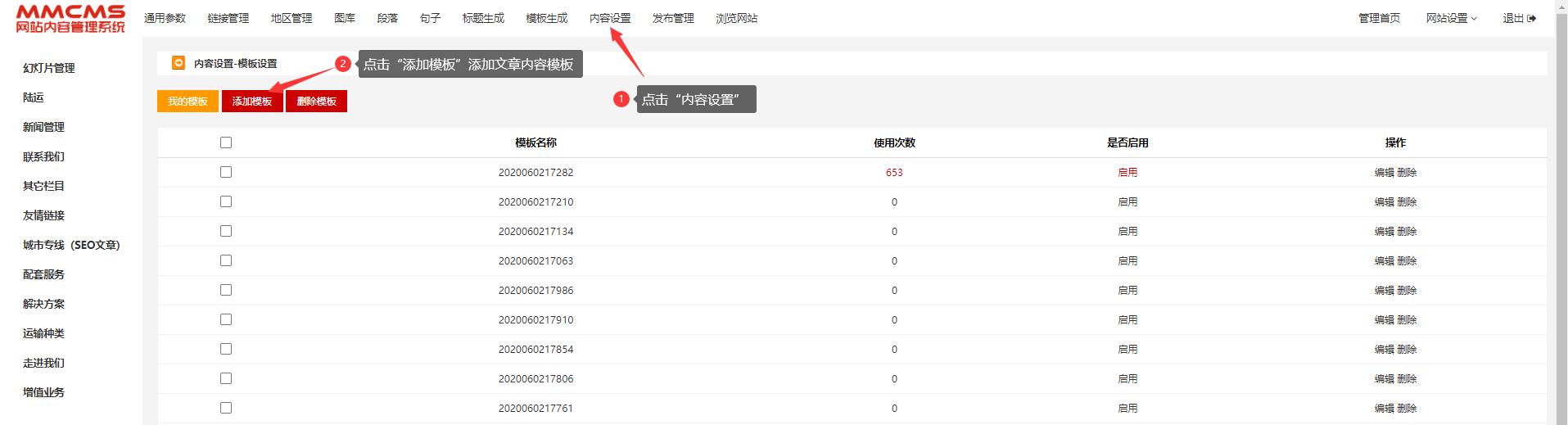 九、点击”内容设置“添加或编辑文章模板